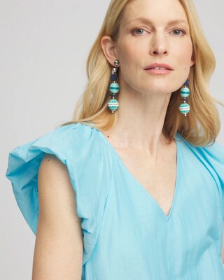 - A-line fit; short flutter sleeves.