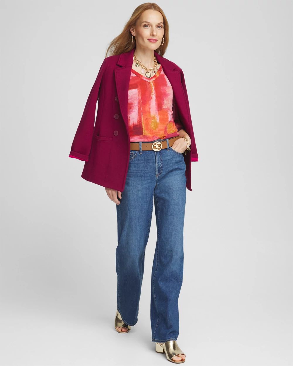 Soft and stretchy, our Geometric Print 3/4 Sleeve Tee is the an essential for everyday comfort and style. Made from lightweight cotton-stretch material, this tee features a modern fit that smooths your shape, plus a flattering V-neck. Wear to everywhere, from work to special occasions, paired with our Brigitte pants.
