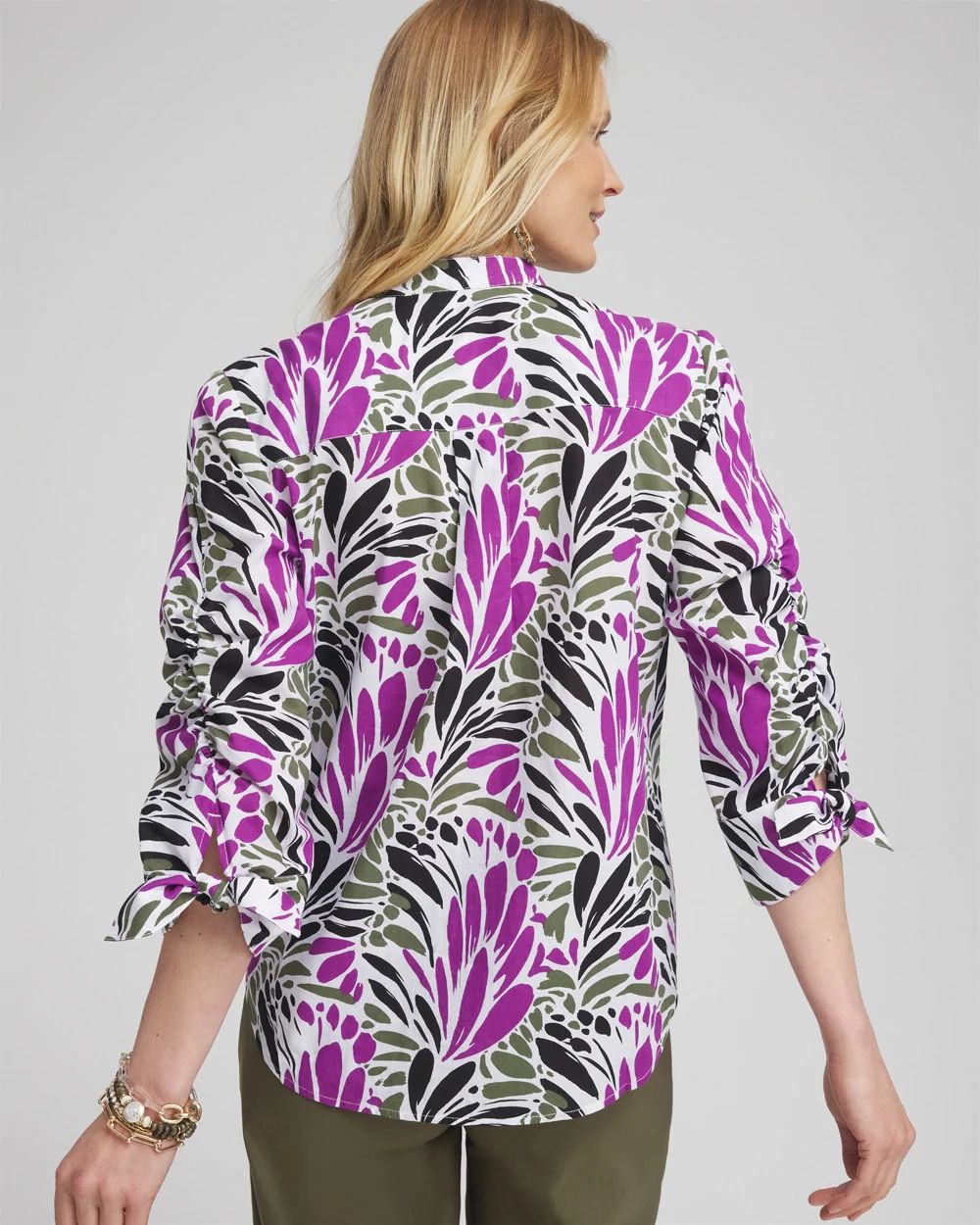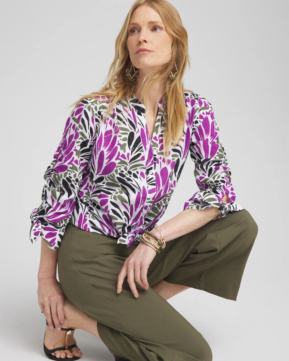 You'll find that our Ruched Sleeve Floral Blouse has just the right look and feel for the season. Made with summer cotton that's lightweight and breathable, this button front top features ruching details and functional tie accents at the 3/4 sleeves, plus a lovely floral print. Wear it with crops or capris for an look that's the right fit for warmer days and nights.