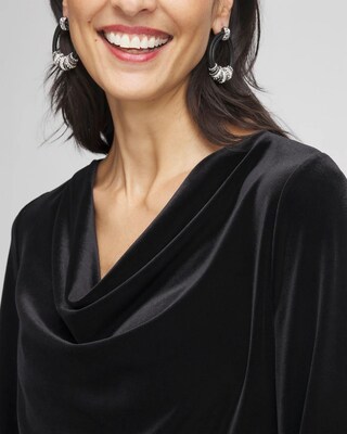 You will love our new Velvet Cowlneck Top, featuring a flattering neckline, subtle-stretch fabric, and bracelet sleeves. Pair with our Travelers™ Velvet Pants for an elegant head to toe look. Available now in Travelers™Black.